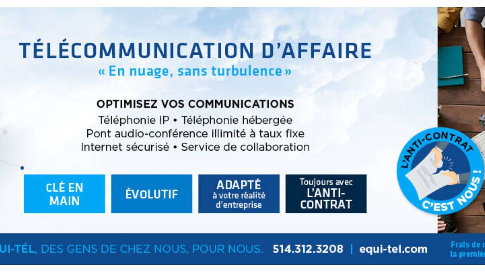Revendeur de services de télécommunications Ligne IP (interurbain gratuit CDA/US) / Téléphonie IP, Système téléphonique hébergé et/ou dans nos installations / Internet de Vidéotron / AUCUN CONTRAT.